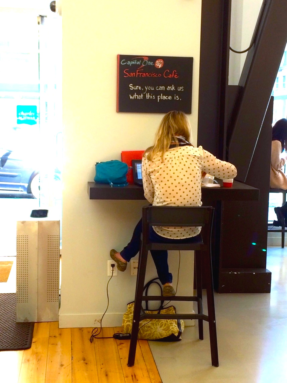 Cafés wie jenes in San Francisco gibt es im ganzen Land. Damit lebt Capital One 360 den digitalen Lifestyle und schafft als Online-Only-Dienstleister einen physischen Zugangsort zum Unternehmen.
